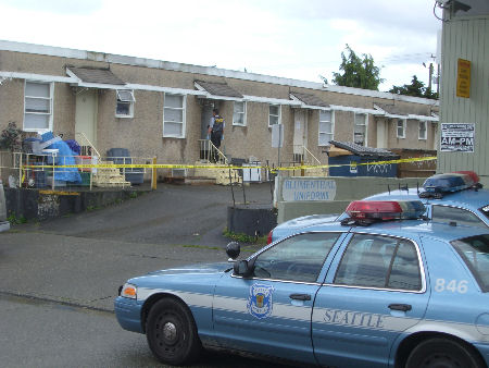 Breaking News: Seattle Police and Seattle Fire are at the scene of a motel on Aurora Avenue and North 86th Street, where the motel manager found the bodies of a man and a woman in one of the rooms.