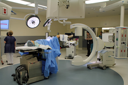 The second operating room on the tour highlights the Hana Orthopedic Surgery Table, which allows surgeons to maneuver patients into ideal positions for orthopedic surgeries such as knee or hip replacements.