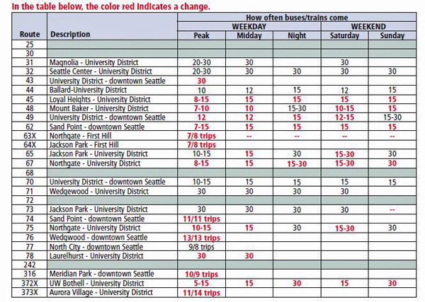 Tweet• Service every 8 minutes or better between the heart of the University District and the University of Washington Station on seven all-day routes (44, 45, 48, 67, 71, 73, and 271)