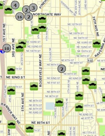 It looks like the car that was stolen from in front of my house (near the intersection of 5th Ave NE and NE 90th Street) is not on the map. Someone in Bryant found it and had called the police to report it, and the SPD response was they’d send someone from a utility company (wtf?) out in a few weeks to look at it. Luckily the person in Bryant who found it was able to find the car owner’s phone number in the ransacked and unlocked car and called her directly so she got her car back. The stolen car was reported to SPD, how hard would it be to have that in a database somewhere so it would be easy to identify the owner when someone reports they found a stolen car to the police?