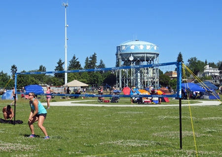 Tents and nets fill the center of Maple Leaf Reservoir Park this morning.