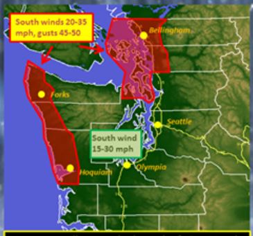 1 to 2 inches of rain is expected for the interior lowlands. Expect strong southerly winds throughout Western Washington.