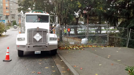 “I was down on Thornton Creek at the end of Ninth Avenue Northeast this afternoon, downstream of the beaver pond (and thus downstream of the absorbent materials placed in the creek). There is still a pervasive smell of diesel from Monday’s accident/spill, despite heavy rain and high water. Poor, poor creek.”