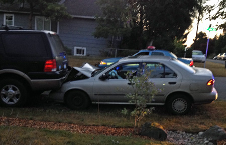 Awoke this (Saturday) morning at 5 a.m. to a loud crash and went to the window to see a car crashed into the back of my SUV at Northeast 97th Street and 12th Avenue Northeast.