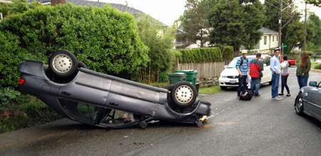 A neighbor sends this photo of a car - possibly stolen - that flipped near Eighth Avenue Northeast and Northeast 104th Street about 7:45 p.m. Sunday.