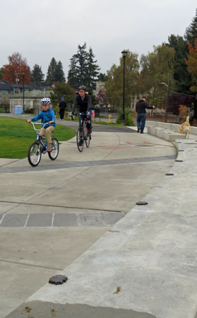 Update: “I asked the parks dept about the length of the path when the park first opened. The response: ‘The outer asphalt pathway is 2,540 feet, so two laps is 200 feet shy of one mile.’ - Maryanne”