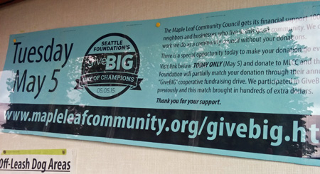 Poster at the park for the Maple Leaf Community Council on GiveBIG day.