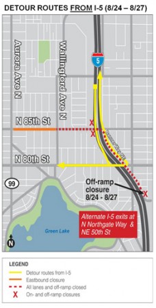This weekend’s closures will occur simultaneously with other N 85th Street lane and I-5 on- and off-ramp closures that began earlier this month.