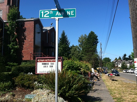 And there’s also bigger multiple-family rummage sales at the Maple Leaf Evangelical Church at 96th Street and 12th Avenue (shown above), as well as at the Eagles, 8201 Lake City Way N.E.