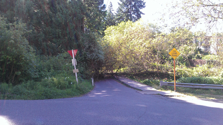 Tim warns us that there’s a tree down on 105th between 5th and 8th.