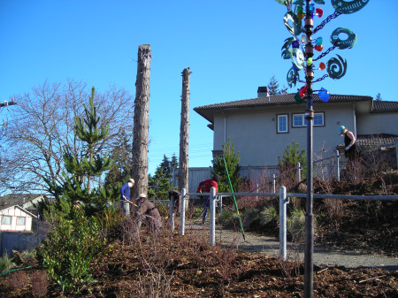 Just shy of a dozen volunteers turned out this morning, including two EarthCorps workers, to mulch and plant at the quarterly Maple Leaf Community Garden work party.