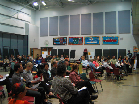 At least 110 Maple Leaf residents attended a meeting Thursday night — which just happened to be Earth Day — to discuss and dissect three proposed designs for the park from The Berger Partnership.