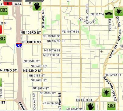 (Those icons on the map that look like raised hands are shopliftings. The car icon in the top right is another car prowl, in the 10700 block of 23rd Avenue Northeast, on Thursday, July 29th.)
