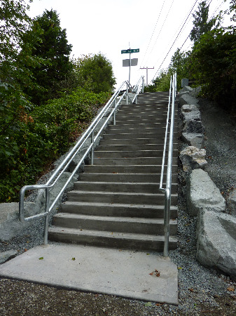 But the staircase that has connected those two dead ends for decades again is open for pedestrians after construction by the Seattle Department of Transportation gave us a bigger and better staircase with a double-handrail on both sides and some extra width to bring it up to new standards.