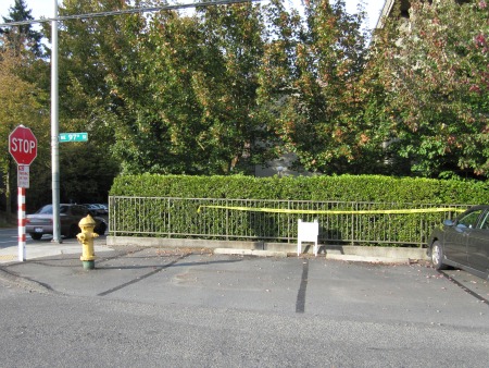 But at the same time, another crew was busy removing a handful of the parking spaces next to the Legend House apartments at 9720 Roosevelt Way N.E. to provide safer access for pedestrians heading to and from the new crosswalk.