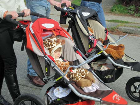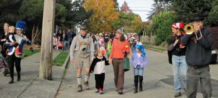 Update: Three to four dozen paraders, led by a trombone, are on their way to Cloud City Coffee and the Blue Saucer. A huge turnout!