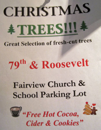 - The Fairview Church and School, 844 N.E. 78th St., is selling trees in its parking lot (that’s its sign, above, too).