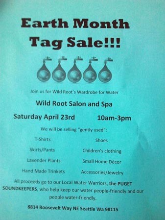 From 10 a.m. to 3 p.m., lightly used clothing, baby clothes, shoes and accessories will be for sale, with all proceeds going to the Puget Soundkeeper Alliance. Wild Root is repeating the event the following weekend, also from 10 a.m. to 3 p.m. Saturday, April 30, at its location inside of Northgate Mall.