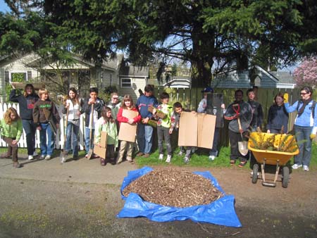 developing and planting a native garden at the preschool. The demonstration project includes nurse logs and a bench made from logs. Our preschoolers have added a wormery and the school cats just love it. The native garden is in the northeast corner of the property. Because the cats love to play in the area I often see people peeking over the fence to check out the garden and the cats.