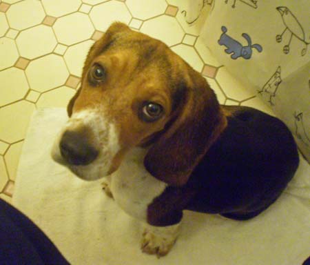 Jackie emails to say she has a Beagle puppy that was found about 11:30 this morning wandering at the intersection of Northeast 92nd Street and College Way. “No collar, very friendly, very vocal. Call: (206)949-0952.”