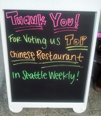 We’d overlooked this kudo in the annual Seattle Weekly “best of” awards, but it’s hard to miss the sign outside Judy Fu’s