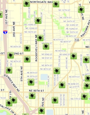 We haven’t done a Maple Leaf burglary report since March, but in the past two months there have been roughly 15 home burglaries here, plus another half-dozen business burglaries. See map above (some of the icons represent more than one burglary).