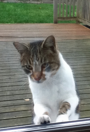 Michelle emails: “This healthy cat has haunted our deck for several days - not sure if it is just out for a stroll or is lost.”