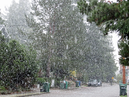 JUST INLAND FROM THE WATER AND AREAS WITH A COUPLE HUNDRED FEET ELEVATION OR MORE COULD SEE LOCAL ACCUMULATIONS OF AN INCH THROUGH EARLY AFTERNOON. THERE ARE INDICATIONS THAT THE MAIN FOCUS OF RAIN AND SNOW SHOWERS WILL SHIFT A BIT FURTHER SOUTH OVER THE EVERETT AND SEATTLE METRO AREAS EAST TO THE FOOTHILLS THIS AFTERNOON.