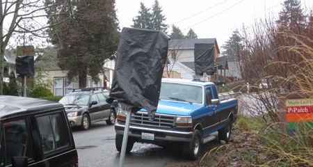 Dana emailed earlier this morning: “Given your coverage of the non-SDOT ‘do not enter’ sign on 105th,thought you’d like to know that someone has put black garbage bags over all of the ‘dead end’ and ‘do not enter’ signs on 103rd. Doubt this was SDOT, either.”