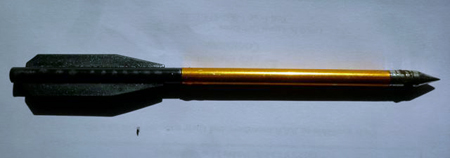 I happen own some darts just like that — they seem to be standard issue junk from China. Mine came with a crappy little $20 crossbow I bought at a bodega, and let me tell you: it is such a load of junk that I put the thing aside before I even had a chance to lose all the ammo… I have a hard time believing that the dart pictured above was embedded an inch deep in ANYTHING. Seriously. And before you say, “but maybe it was fired from a better crossbow than the one you have,” I say, fire that dart from whatever you like. Recurve bow, 30.06, rail gun, howitzer… doesn’t matter, because its just a dull conical steel tip wedged into an aluminum tube with a plastic “vanes” stuck into the other end. Even were it fired from a space-based missile platform, that crappy little crossbow bolt would have folded upon impact with the phone pole. Or anything else. I doubt it could even be gently hammered in, without coming apart! If hitting something with one didn’t render it useless, they would make a decent nerf substitute. As a weapon, its about as dangerous as a water balloon. Less, if its cold water.