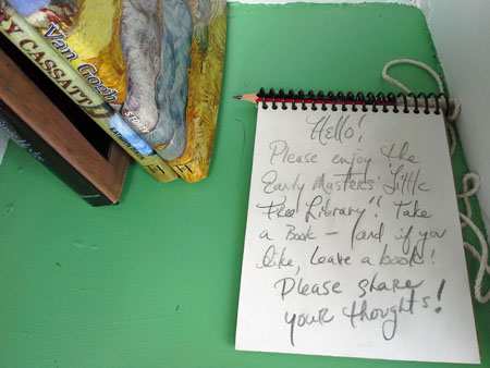 It’s wonderful to see this creative center for art history education for kids joining the little free library movement! I’ll be sorting through my collection to find books to give to our neighborhood effort. Living the dream in Maple Leaf!