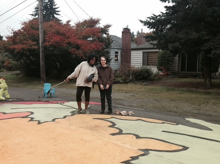Maple Leaf artist Rachel Marcotte first brought up the topic of a neighborhood street mural in summer 2010, after her involvement with two street murals in Wallingford. Neighbors were divided on the issue, so the idea eventually fizzled out.