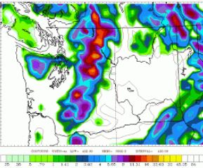over the mountains (foot plus over the Cascades), with several inches over Seattle to Everett.