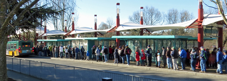 Buses at the Northgate Transit Center were jammed, with long lines waiting for the next bus - or the one after that.