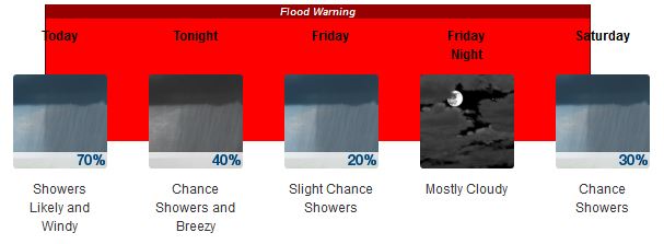 The forecast calls for up to another half-inch of rain, with winds increasing to perhaps 26 mph by afternoon.