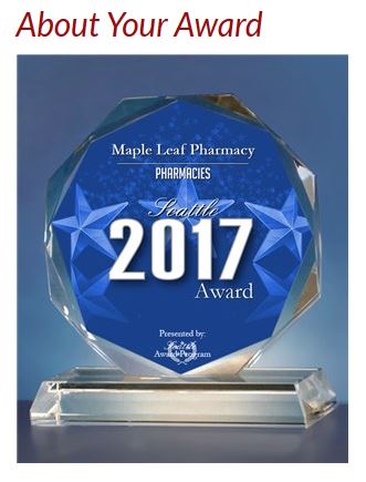 “SEATTLE March 22, 2017 — Maple Leaf Pharmacy has been selected for the 2017 Seattle Award in the Pharmacies category by the Seattle Award Program.”