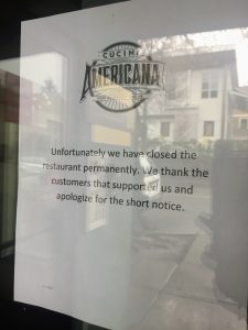 Latest (as of several days ago) is Cucina Americana, which opened less than a year ago in the space at 9400 Roosevelt Way N.E. previously occupied by Cafe Piccolo.