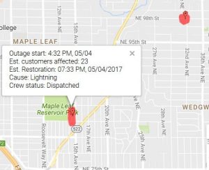 Seattle City Light reports 23 neighbors without power near 15th Avenue Northeast and Maple Leaf Reservoir Park.