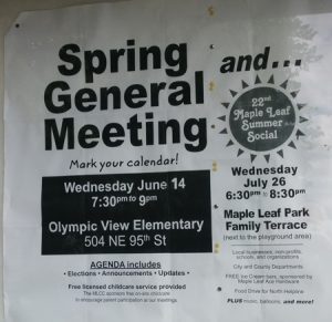 It calls for a general community meeting on Wednesday, June 14th, at Olympic View Elementary. And a revival of the Summer Social on July 26th.