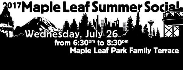 The 22nd annual Maple Leaf Summer Social is scheduled for Wednesday, July 26th, at Maple Leaf Reservoir Park Family Terrace (Playground) from 6:30 - 8:30 p.m. There will be live music, fun activities for kids, information booths for the neighborhood, and free ice cream bars sponsored by Maple Leaf Ace Hardware.