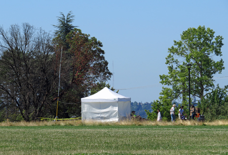 The emergency hub at the park this morning.