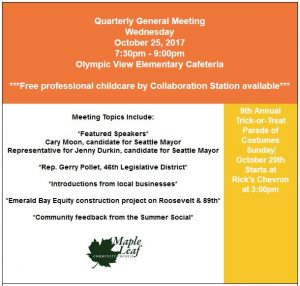The parade will start at 3 p.m. on Sunday, October 29, at Rick’s Chevron on the corner of Fifth Avenue Northeast and Northeast 85th Street, and ending at Maple Leaf Park.